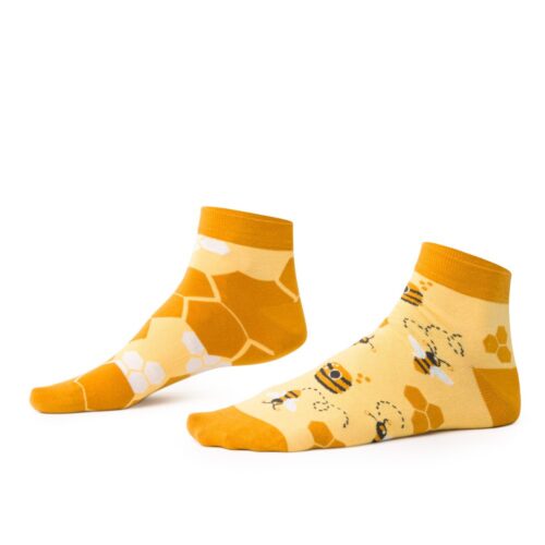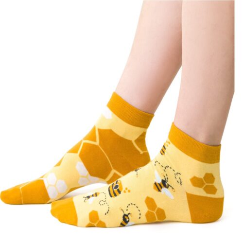 Skarpetki z pszczółkami nie do pary to nie tylko uroczy dodatek, ale także doskonały sposób na wyrażenie swojej miłości do natury i unikalnego stylu. Ciepły żółty kolor w połączeniu z motywem pszczół stanowi idealną kombinację, która przyciąga uwagę i dodaje radości każdej stylizacji.