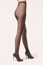 Rajstopy w kropki Puntina 20 den to absolutny bestseller marki Gabriella, które łączą w sobie modny design i wygodę noszenia. Ozdobione drobnymi groszkami, na tle cienkiej dzianiny, przyciągają spojrzenia i stanowią wyrazisty detal każdej stylizacji, idealnie wpisując się w aktualne trendy.Te wyjątkowe rajstopy mają grubość 20 den, co sprawia, że są na tyle cienkie, aby nie odznaczać się pod ubraniem, ale jednocześnie wystarczająco trwałe i odporne na uszkodzenia. Niewidoczne wzmocnienie na palcach oraz elegancki krój bez wydzielonej części majteczkowej zapewniają nie tylko estetykę, ale i komfort użytkowania. Dodatkowo, bawełniany klin i płaski szew podnoszą komfort noszenia, a elastyczna dzianina doskonale dopasowuje się do nóg, podkreślając ich smukły kształt.Model Puntina klasyczne czarne rajstopy z drobnymi kropkami na czarnym tle (nero)Gatunek II Skład85% – Poliamid15% – Elastan